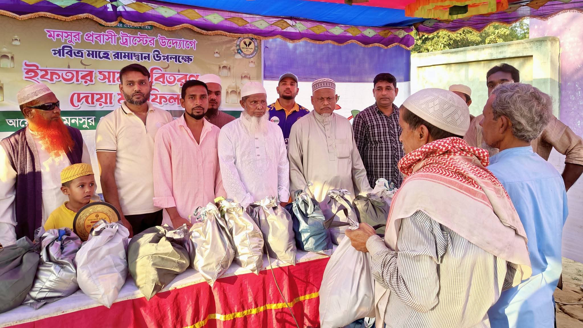 পবিত্র মাহে রমজান উপলক্ষে ইফতার সামগ্রী বিতরণ করেছে মনসুর প্রবাসী কল্যাণ সংস্থ