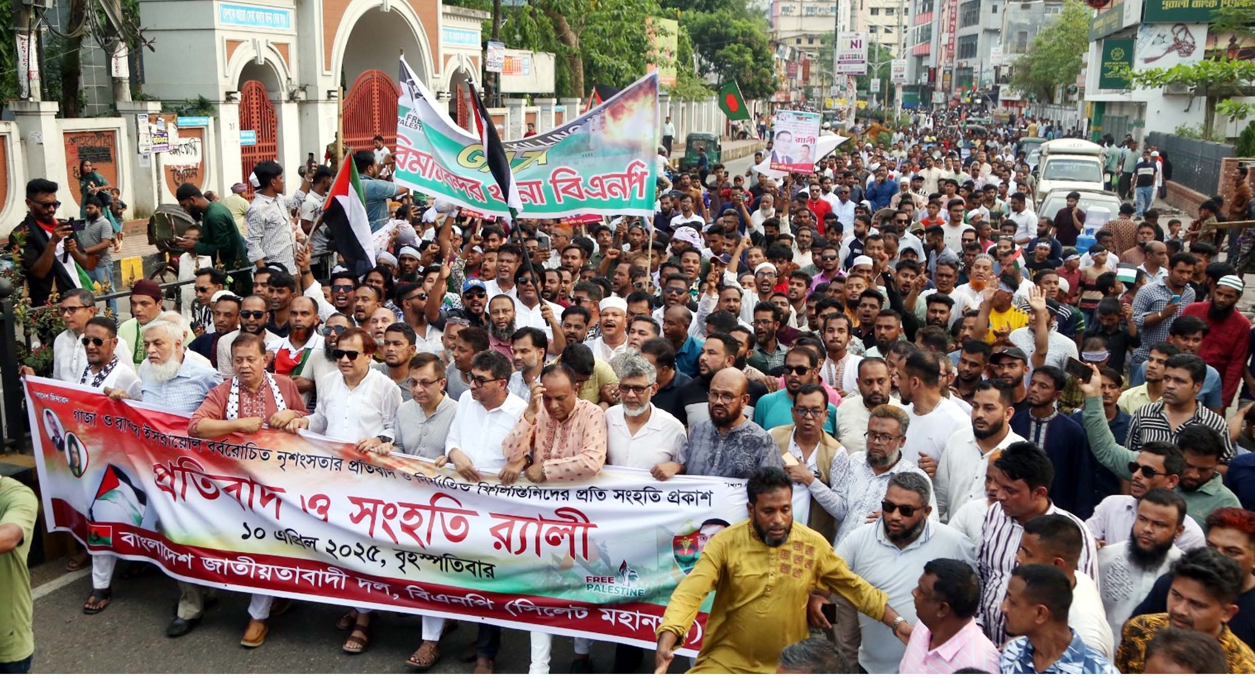 ফিলিস্তিনিদের প্রতি সংহতি জানিয়ে সিলেটে বিএনপির র্যালি ও সমাবেশ