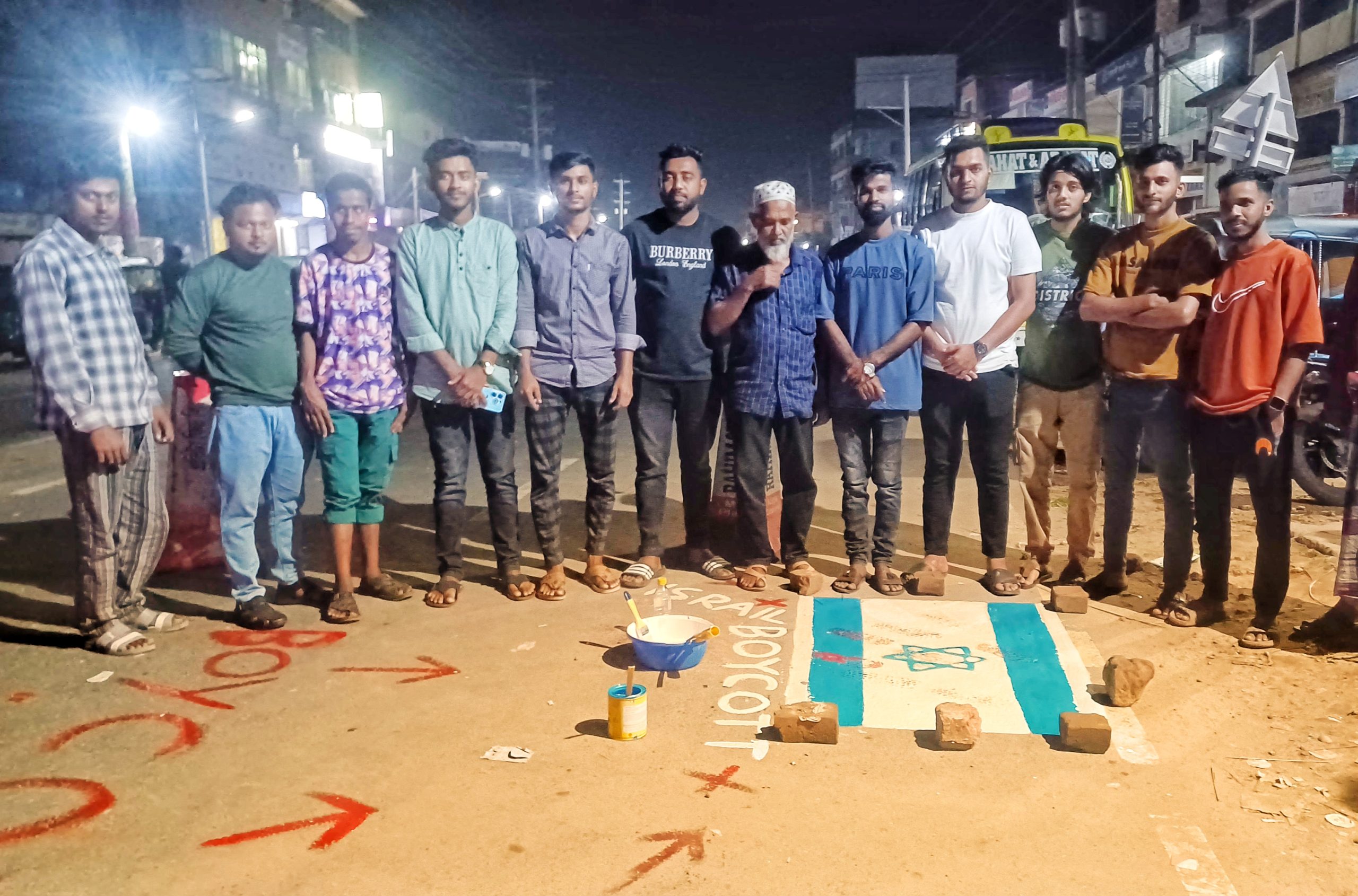 গভীর রাতে রাস্তায় ইসরায়েলের পতাকা অঙ্কন করে বড়লেখায় ছাত্রদলের প্রতিবাদ