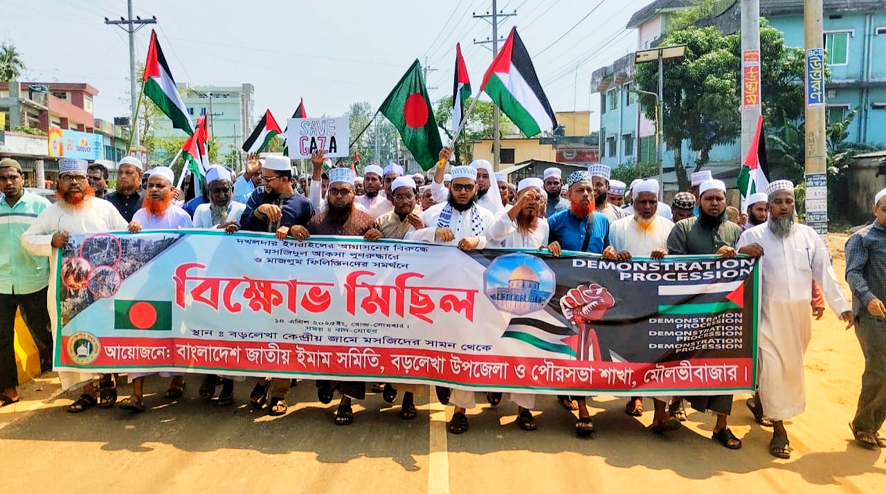 বর্ষবরণের দিনে ফিলিস্তিনের প্রতি সংহতি জানিয়ে বড়লেখায় জাতীয় ইমাম সমিতির বিক্ষোভ মিছিল
