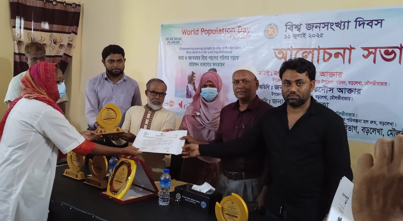 বড়লেখায় বিশ্ব জনসংখ্যা দিবসে কর্মক্ষেত্রে শ্রেষ্টত্ব অর্জনকারিরা সংবর্ধিত