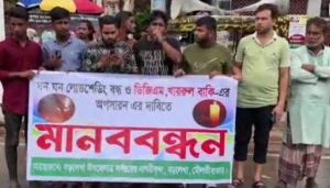 বড়লেখায় লোডশেডিং বন্ধে ও ডিজিএমের অপসারণের দাবিতে মানববন্ধন