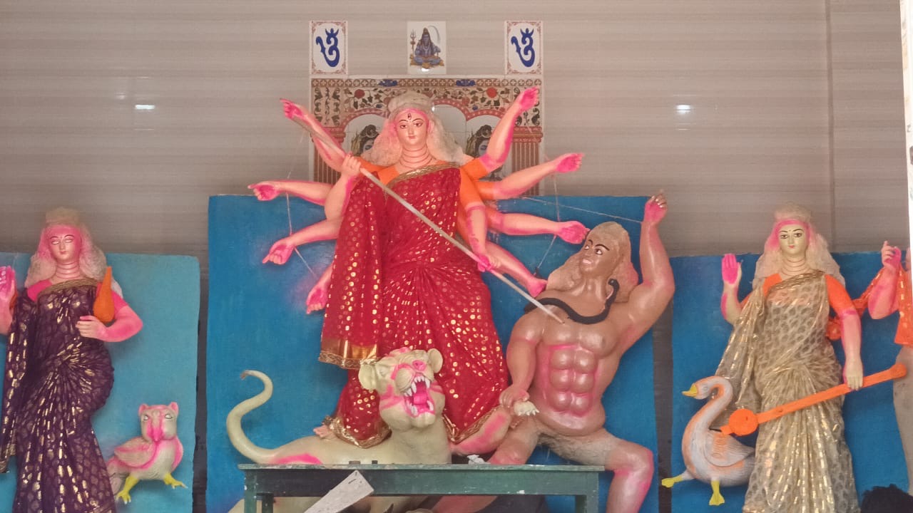 বড়লেখার দক্ষিণভাগে প্রতিমা তৈরিতে ব্যস্ত শিল্পীরা