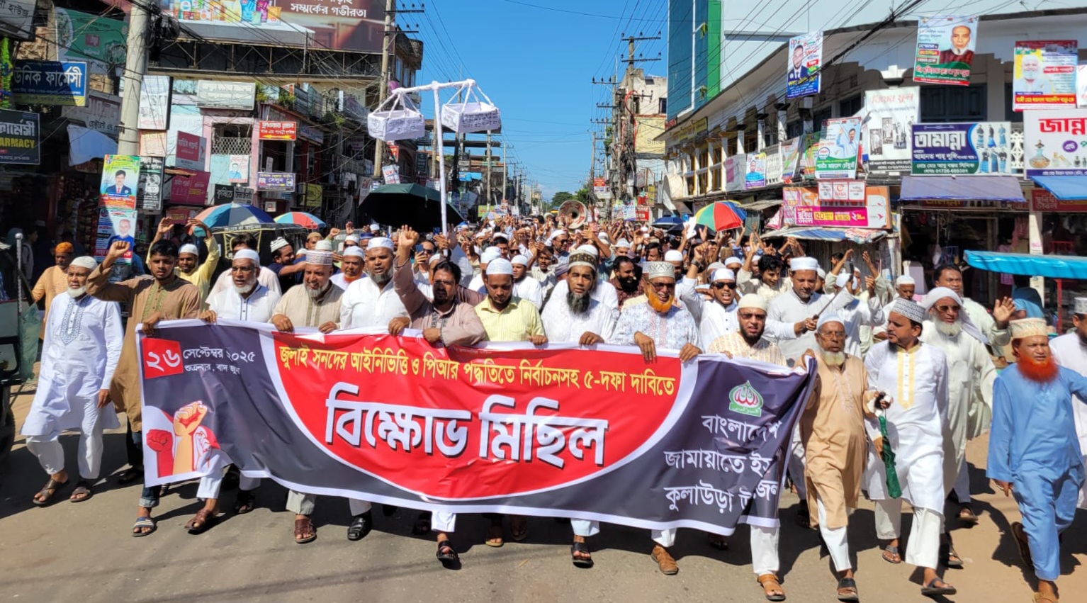 কুলাউড়ায় পিআর পদ্ধতি ও ৫ দফা দাবিতে জামায়াতের বিক্ষোভ