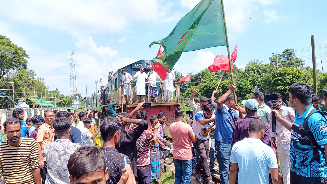 কুলাউড়ায় ৮দফা দাবিতে পাহাড়িকা ট্রেন আটকে দিল আন্দোলনকারীরা