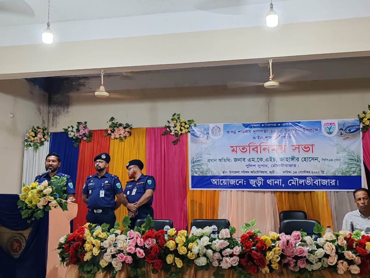 জুড়ীতে দুর্গাপূজা উপলক্ষে আইন-শৃঙ্খলা বিষয়ক মতবিনিময় সভা
