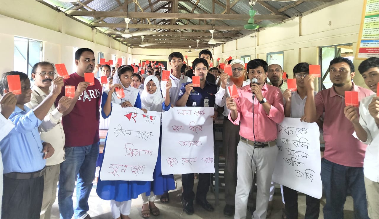 কুলাউড়ায় মাদক, ইভটিজিং, বাল্যবিয়ে ও স্মার্টফোনে আসক্তিকে লালকার্ড দেখিয়ে শিক্ষার্থীদের শপথ