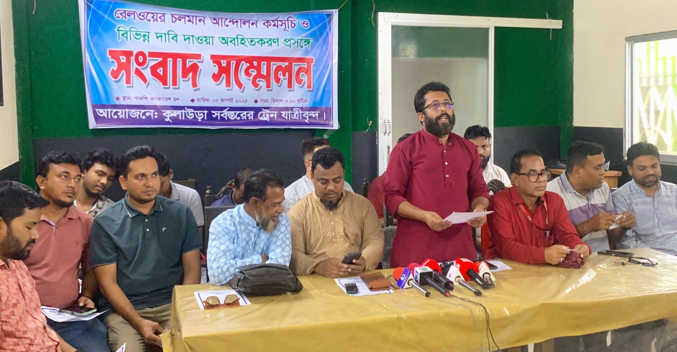 কুলাউড়ায় সংবাদ সম্মেলন করে ট্রেনযাত্রীদের ৮দফা দাবি ঘোষণা