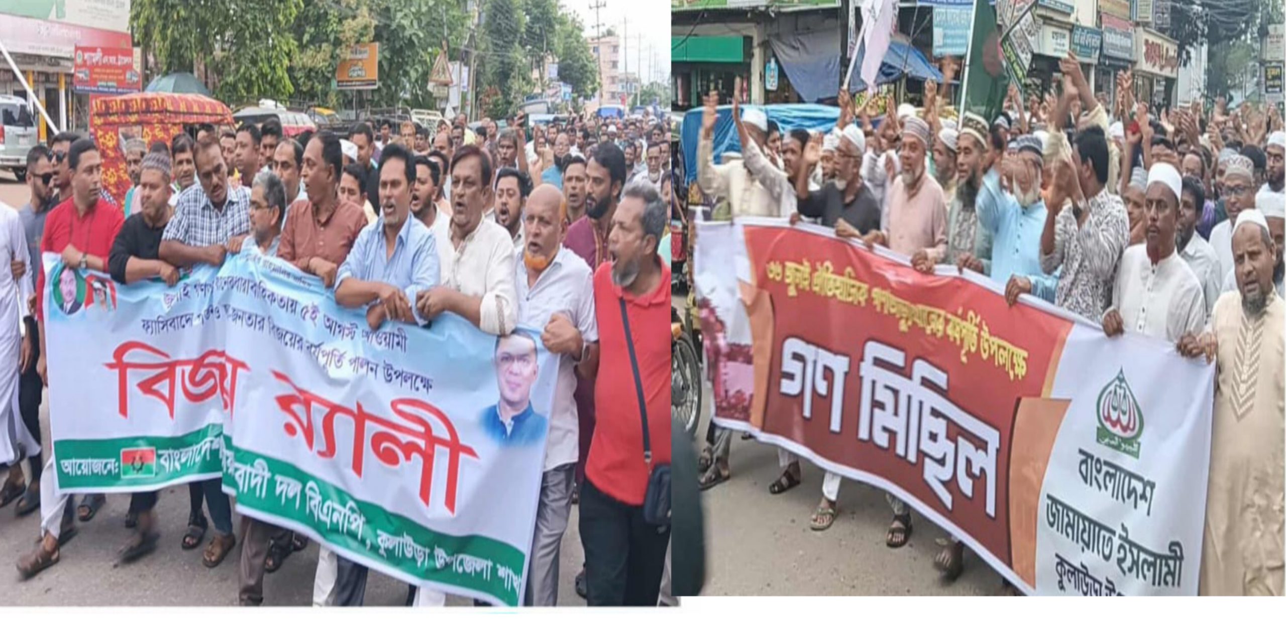 কুলাউড়ায় গণঅভ্যুত্থান দিবসে বিএনপি-জামায়াতের পৃথক বিশাল মিছিল