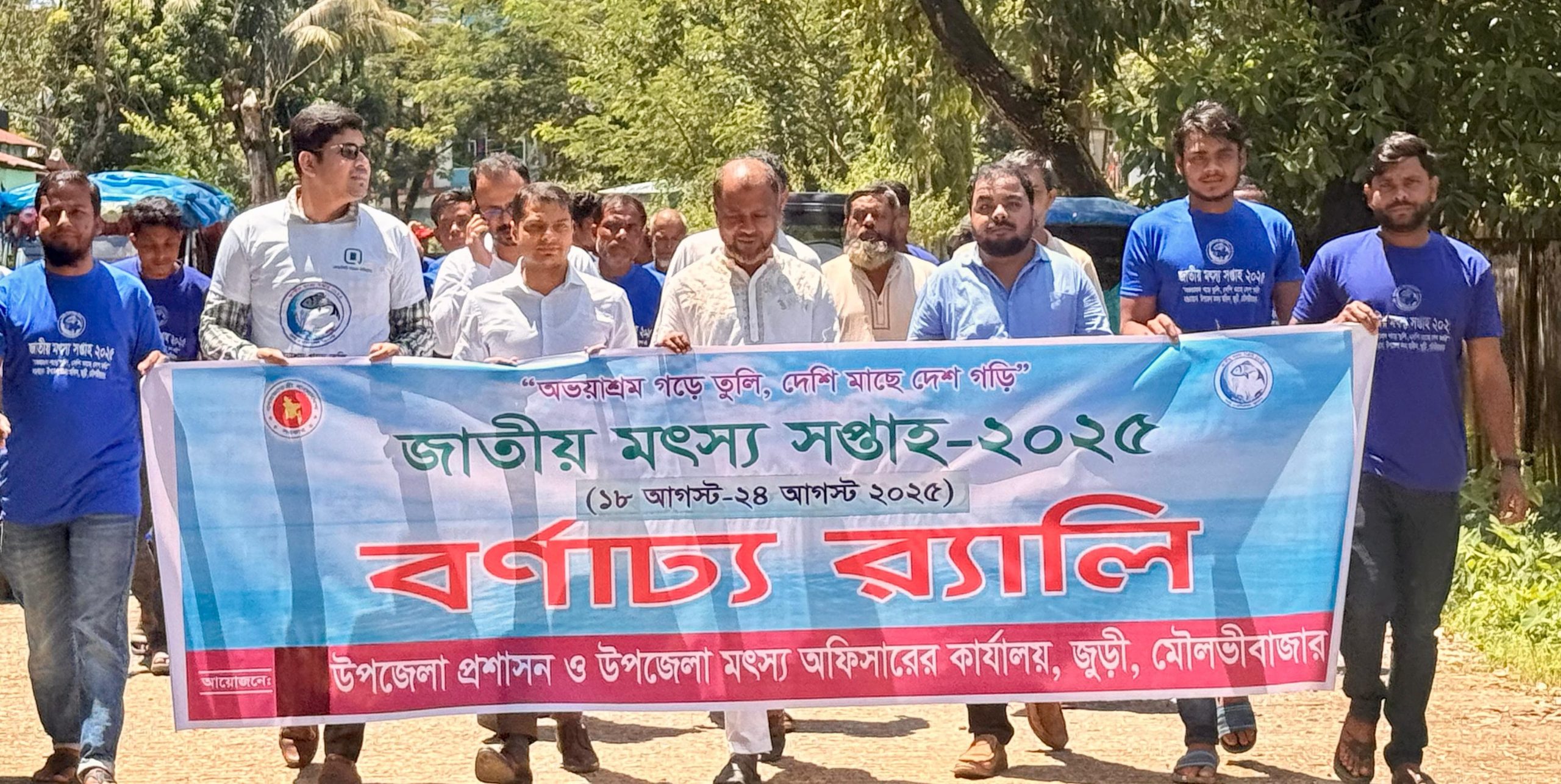 “অভয়াশ্রম গড়ে তুলি, দেশি মাছে দেশ গড়ি” এই প্রতিপাদ্যকে সামনে রেখে জাতীয় মৎস্য সপ্তাহ ২০২৫ উপলক্ষে মৌলভীবাজারের জুড়ীতে নানা কর্মসূচি