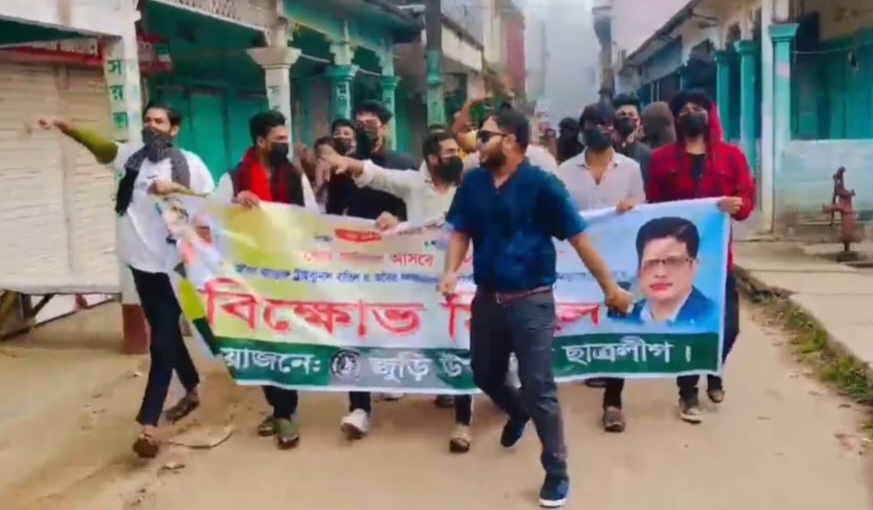 জুড়ীতে নিষিদ্ধ সংগঠন ছাত্রলীগের বিক্ষোভ মিছিল