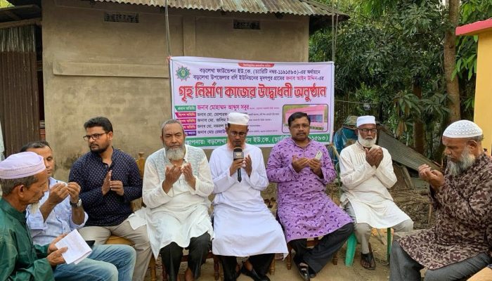 বর্ণি ইউনিয়নের মুদৎপুর গ্রামের হত-দরিদ্র আইন উদ্দিনের সেমিপাকা ঘরের নির্মাণ কাজের উদ্বোধন